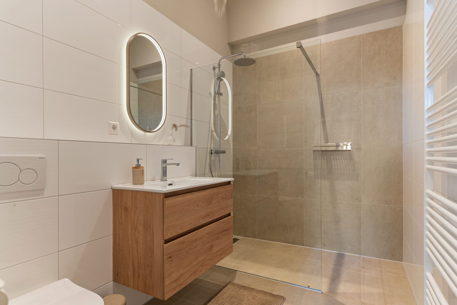 - Luxe badkamer met stortdouche.