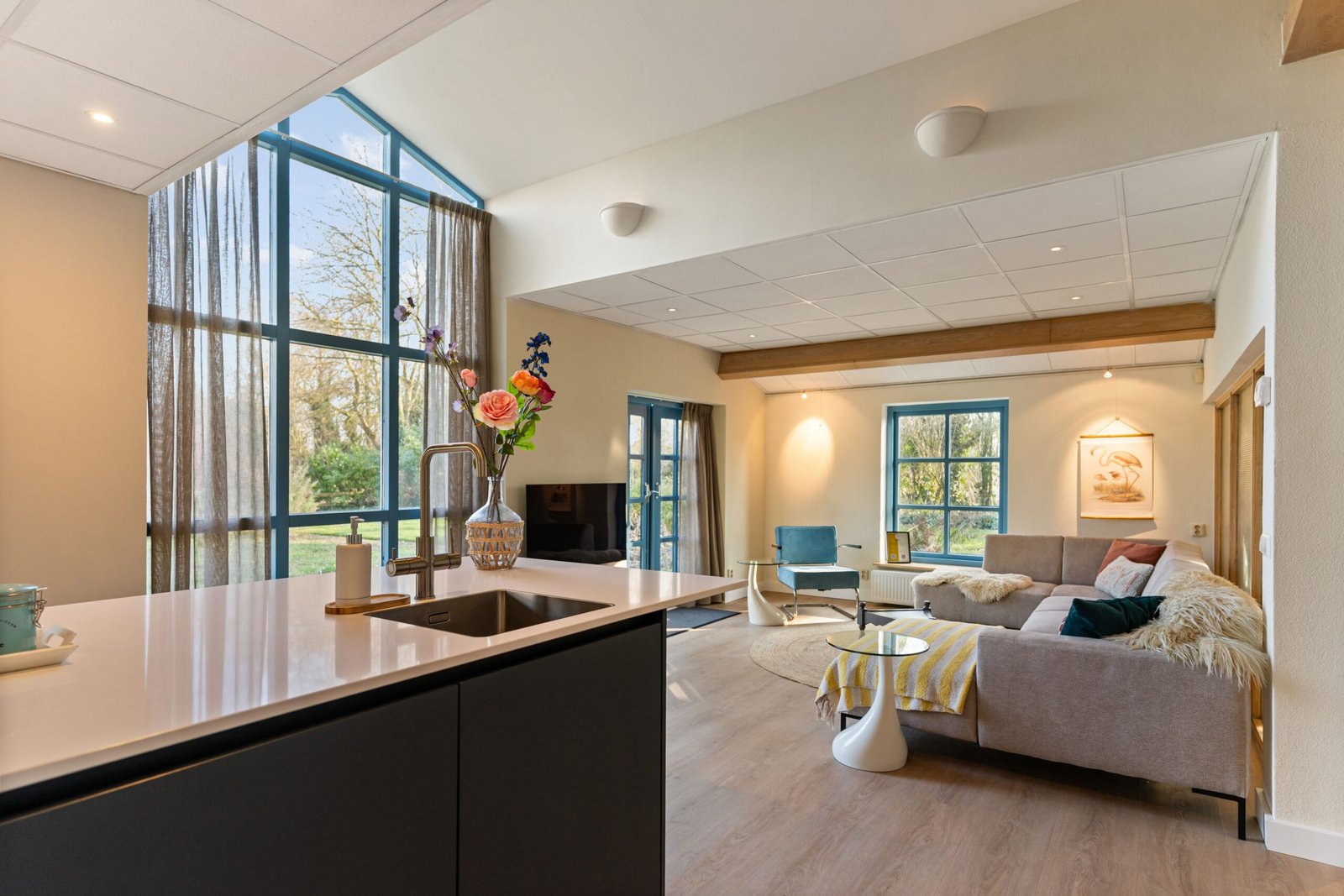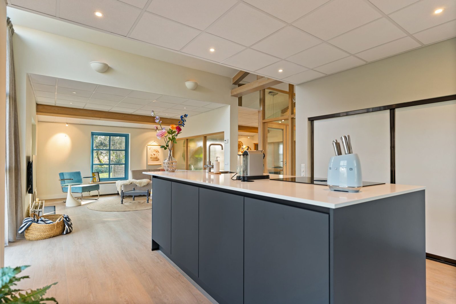 - Grote leefkeuken met o.a. borra kookplaat, quooker, oven en vaatwasser