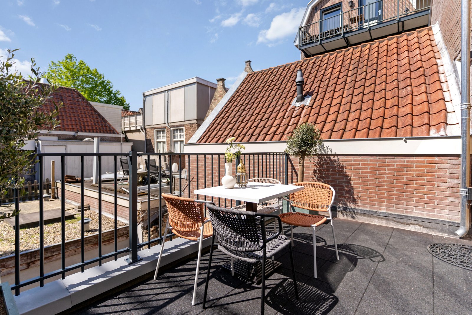 Op het stadsterras, privé voor dit appartement, is een heerlijk zitje aanwezig en kijkt u uit op Kapelkerk van Alkmaar. Voor de bezienswaardigheden hoeft u de deur dus niet uit!
